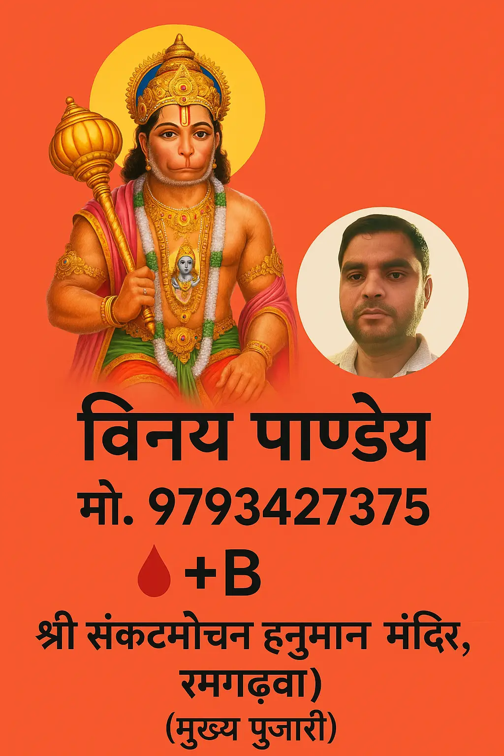विनय पाण्डेय जी, श्री संकटमोचन हनुमान मंदिर, रमगढ़वा के मुख्य पुजारी होने के नाते समाज की सेवा को ही ईश्वर…